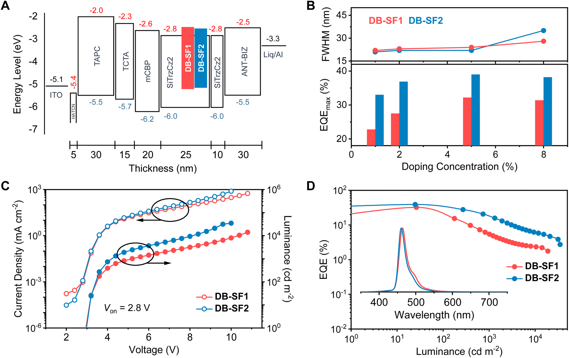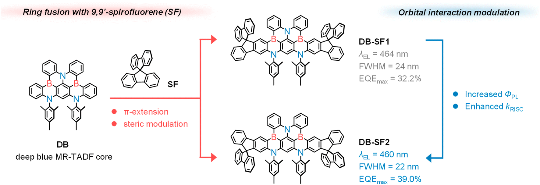 论文标题:High-performance deep-blue electroluminescence from multi-resonance TADF emitters with a spirofluorene-fused double boron framework
