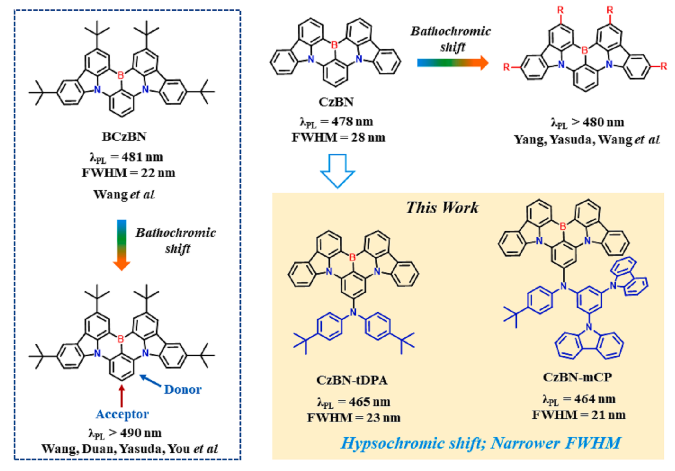 标题:Peripheral decoration of multi-resonance TADF emitter for narrowband blue OLEDs
