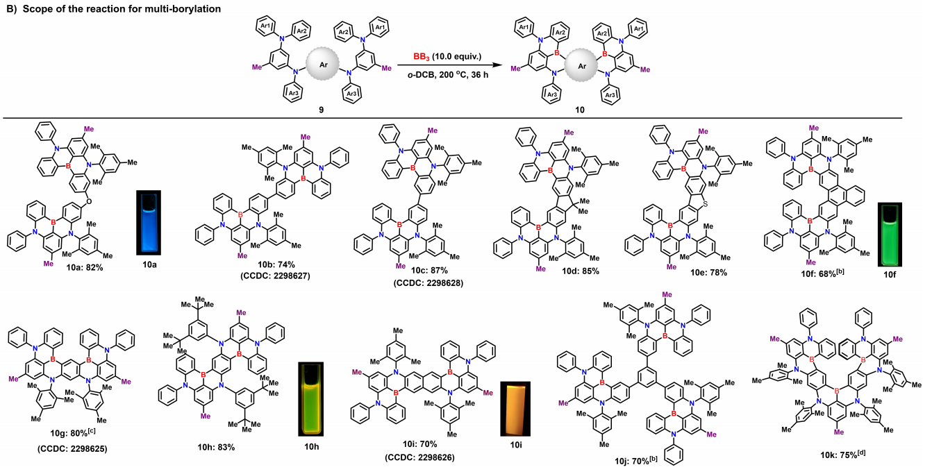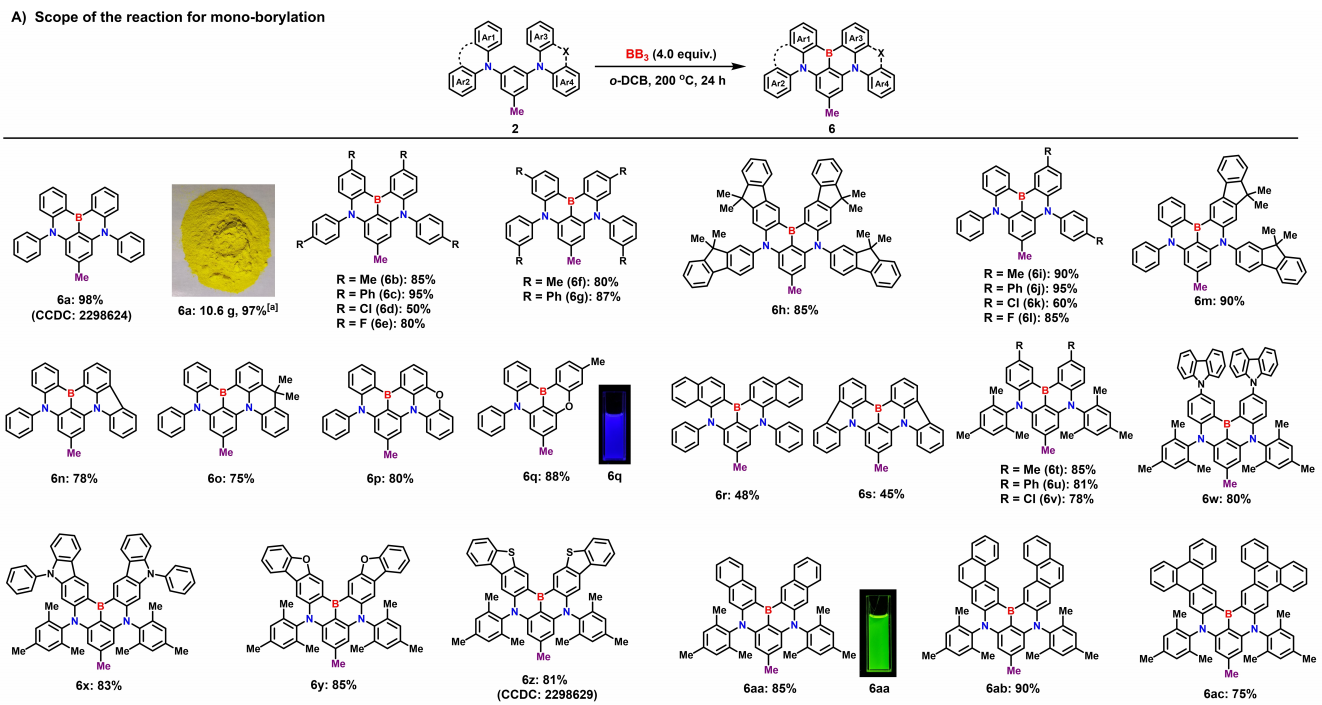 标题:Orienting Group Directed Cascade Borylation for Efficient One-Shot Synthesis of 1,4-BN-Doped Polycyclic Aromatic Hydrocarbons as Narrowband Organic Emitters