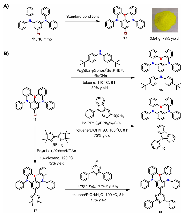 这项工作为含硼稠环分子的合成以及高性能窄光谱发光材料提供了具有普适性的合成方法以及分子设计策略。