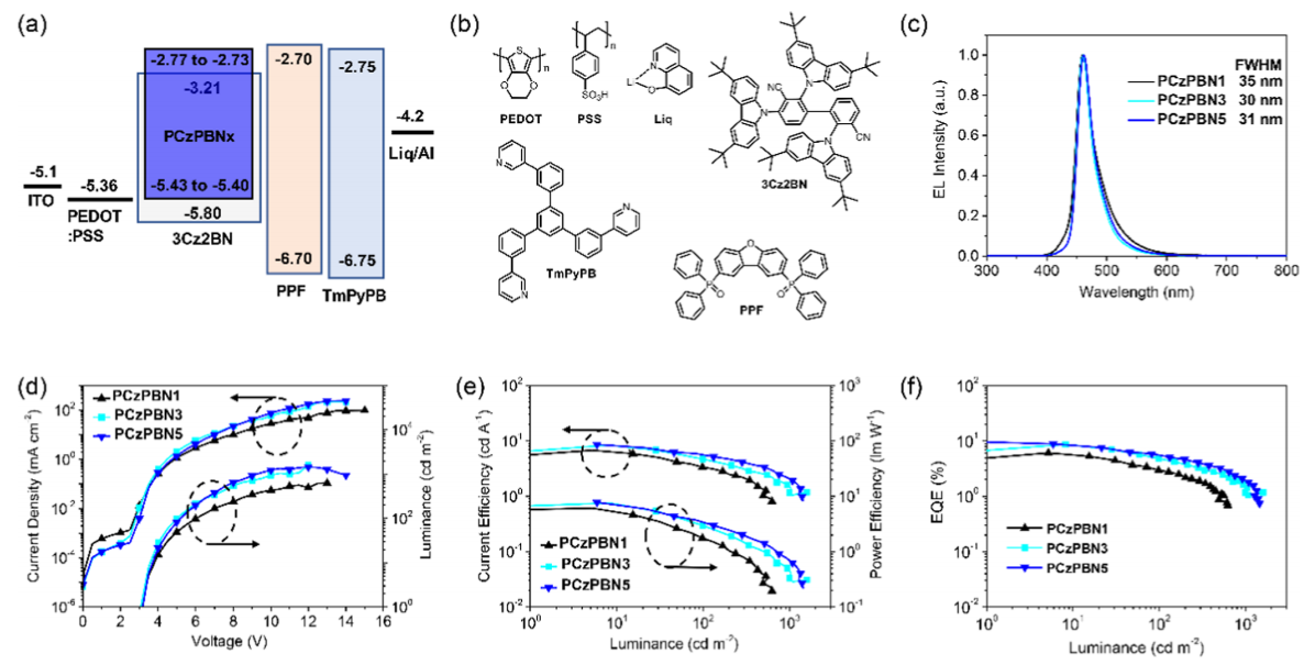 图2:基于PCzPBNx器件的发光性能