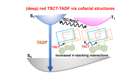 标题:Simultaneously enhancing the planarity and electron-donating capability of donors for through-space charge transfer TADF towards deep-red emission.